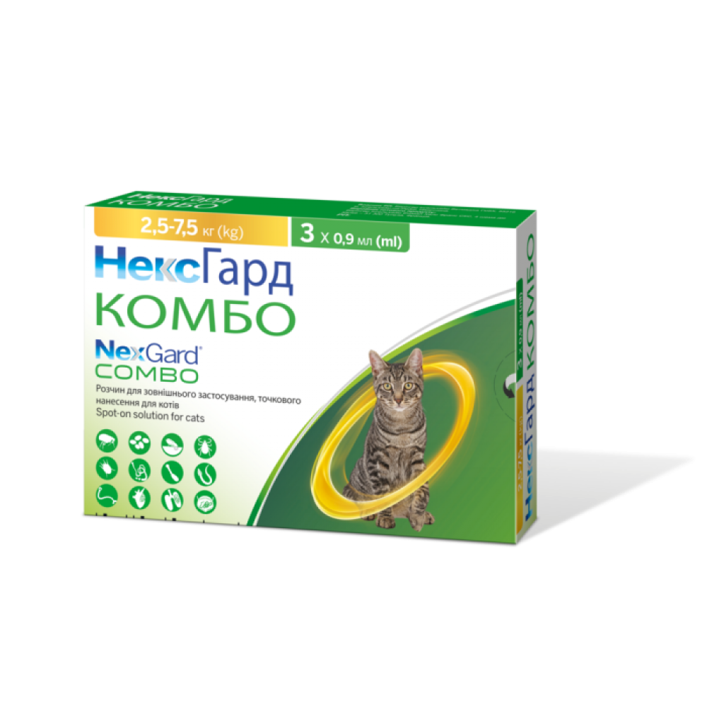 NeXGard Combo je antiparazitni veterinarski lek koji se koristi za lečenje mešovitih infekcija sa spoljnim parazitima (buve, krpelji ili grinje) i unutrašnjim parazitima (pantljičare i okrugle gliste) kod mačaka.