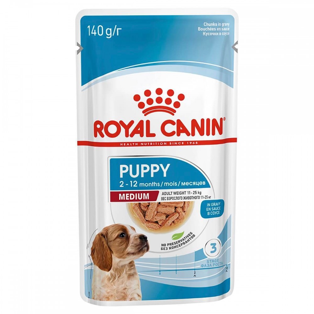 Kompletna vlažna hrana za štence srednjih rasa.